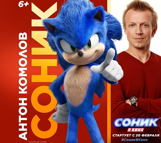 Из новостей по фильму «Соник в Кино» недавно стало известно, что Соника будет озвучивать известный ведущий — Антон Комолов. Он же озвучивал Соника в трейлере.