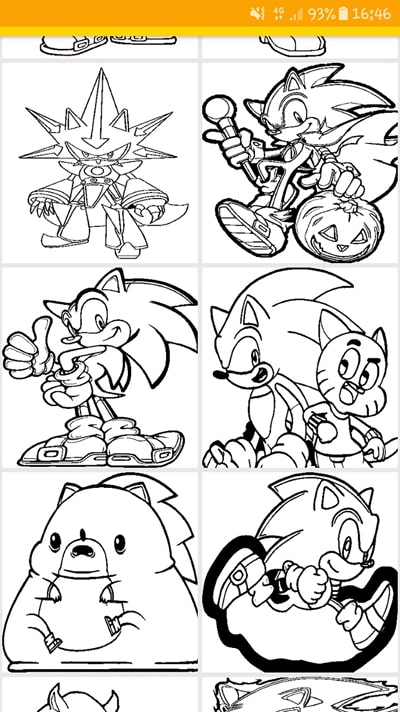 Coloring Sonic Games — ещё одна хорошая фанатская игра-раскраска. Разработчик данной игры — AN4Games. В отличие от Coloring book for Sonic, у вас есть возможность выбрать совершенно любой цвет из большой палитры. Также есть ещё несколько удобных функций: отменить или вернуть действие, сохранить, удалить и поделиться с друзьями. Среди инструментов добавлена пипетка, с помощью которой можно выбрать цвет с рисунка. Также ещё добавлен карандаш, которым можно дорисовывать детали. В игре имеется большой выбор персонажей: Метал Соник, Верхог, Биг и многие другие.