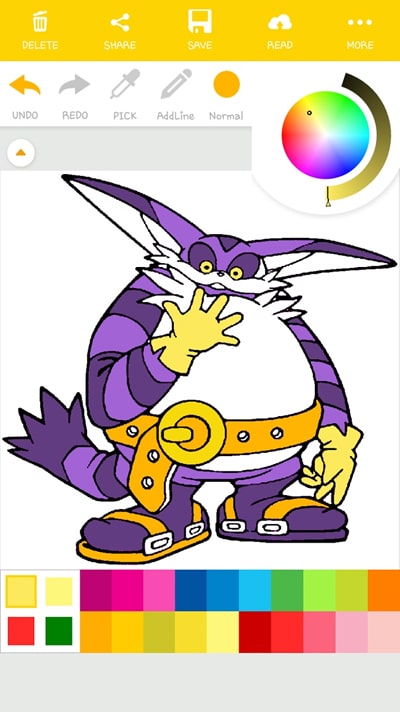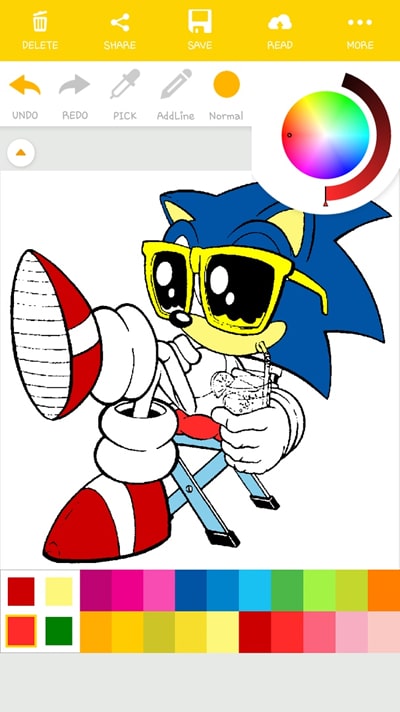 Теперь раскраска есть и на андройд! Разработчиком игры является Coloring Games D. Выбирайте различные цвета и эксперементируйте. Можете проверить себя на то, как хорошо запомнили палитру определенного персонажа из сониковской вселенной. В раскраске большой выбор персонажей, среди которых можно увидеть Соника, классического Соника, Тейлза, Наклза, Крим и многих других. После завершения у вас есть возможность сохранить готовый результат на своё устройство.