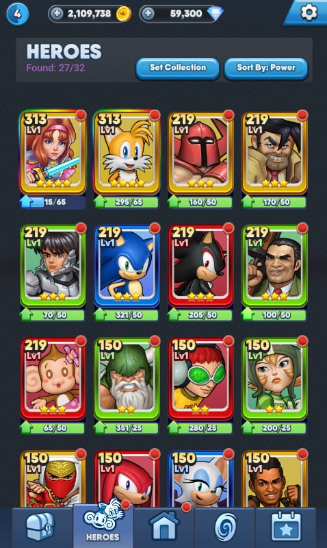 SEGA Heroes — игра, где вам нужно сражаться, отгадывая головоломку. Чем больше отгадываете, тем персонажи сильнее и больше атакуют. Вам нужно играть группой из четырех героев, каждый из которых обладает своими символом и особенностями. В игре присутствуют персонажи из различных игр SEGA, как: Super Monkey Ball, Golden Axe, Streets of Rage, Shinobi и многих других. Среди героев из вселенной Соника можно встретить Эми, Крим, Бига, Шедоу, Тейлза, Наклза, Руж, Соника и других. Проходите уровни и собирайте карты с персонажами, чтобы разблокировать новых или повысить уровень. В игре есть несколько режимов, некоторые из которых будут доступны изначально.