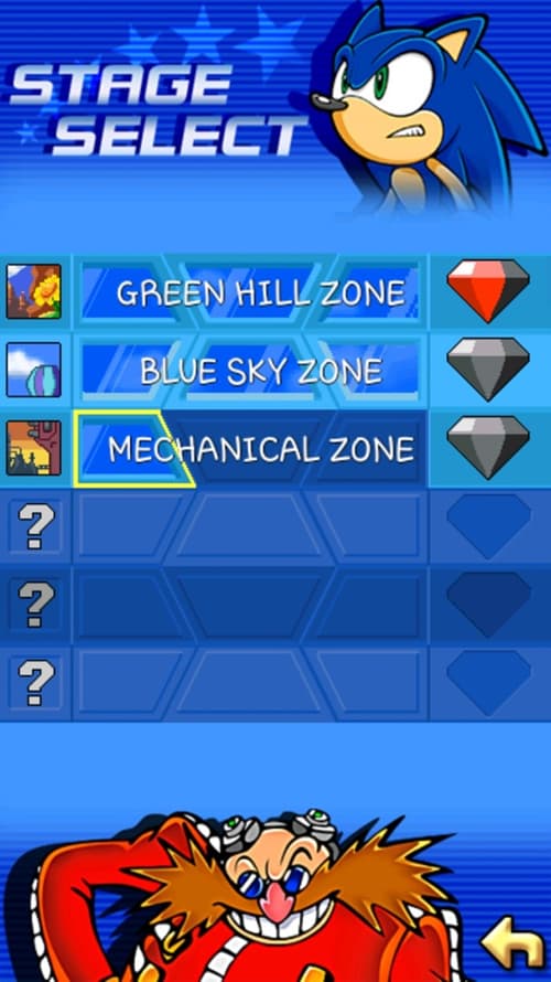 Переиздание Sonic 1, рассчитанное для широкоформатных экранов смартфонов. Кроме того может похвастаться режимом Time Attack и таблицей лидеров, стабильным фреймрейтом в 60 FPS, исправленными багами оригинала и переработанным саундтреком. Вы можете поиграть за Тейлза и Наклза. А в остальном это тот же Sonic the Hedgehog: собирайте кольца, разбивайте бадников и торопитесь, чтобы набрать как можно больше очков и сорвать схемы злого доктора Роботника!