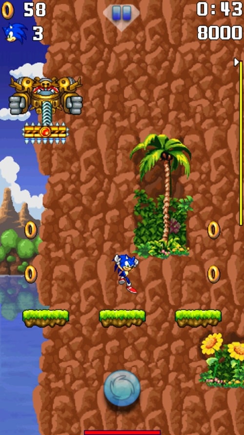 Sonic Jump — это вертикальный платформер, разработанный SEGA Europe и Hardlight на основе одноимённой игры 2006-ого года со схожим геймплеем. Соник пытается помешать планам Эггмана, для чего ему нужно пересечь все препятствия и уничтожить босса в конце каждой из четырёх зон: Green Hill, горы, джунгли и небеса. Помимо Соника вы можете разблокировать Тейлза, Наклза, Эми, Руж, Сильвера и Блейз! Также в Sonic Jump есть бесконечный Arcade Mode.