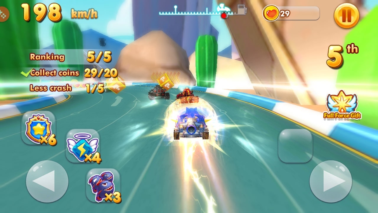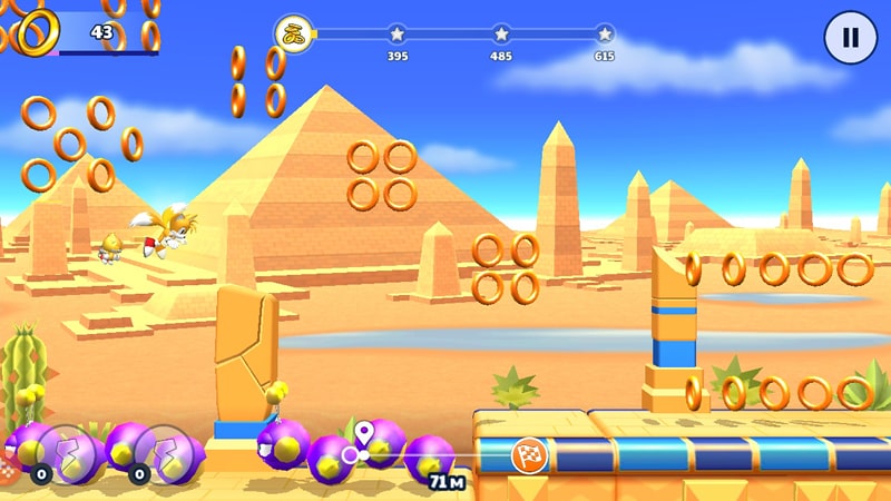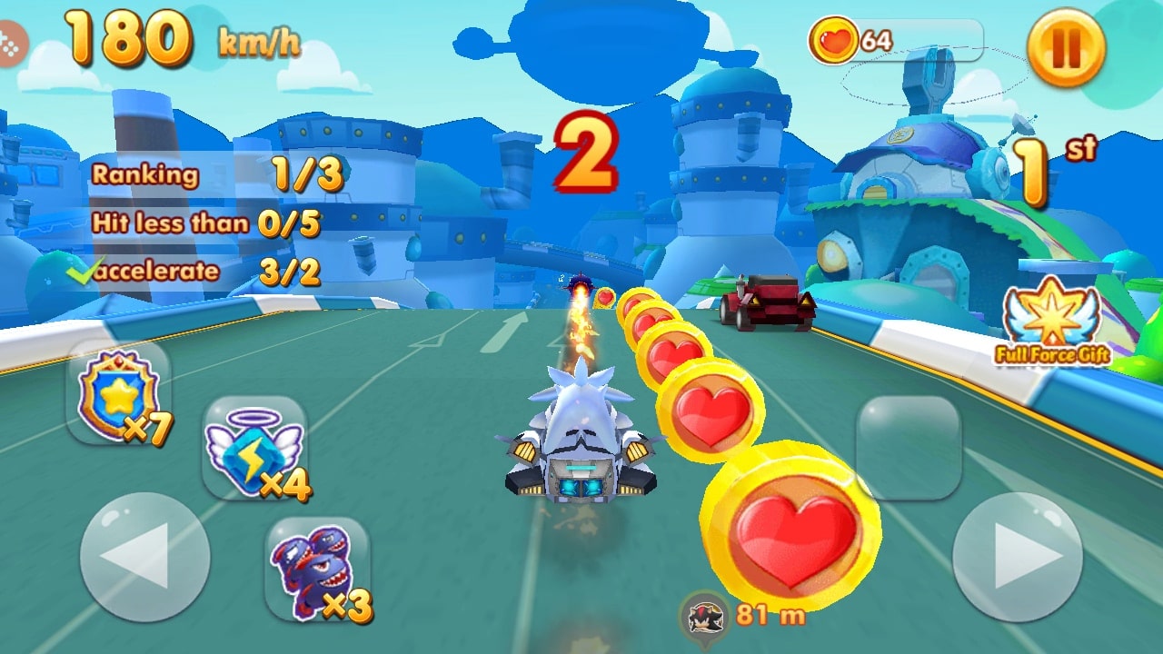 Если вы играли в Sonic & Sega All-Stars Racing на компьютере, то вам многие зоны и персонажи покажутся знакомыми! Это мобильная упрощенная версия, где нужно проходить уровни, выполняя задания. Вы можете играть за уже известных вам Соника, Тейлза, Наклза, Бига, Шедоу, Эми, Эггмана, Метал Соника, а также за героев из других игр и вселенных, таких как: Айай из Super Monkey Ball, Бита из Jet Set Radio, Амиго из Samba de Amigo, Улала из Space Channel 5 и других. Собирайте бусты для ускорения, чтобы обогнать других героев. У каждого персонажа имеется своя "супер-форма", с помощью которой он некоторое время является самым сильным и быстрым.