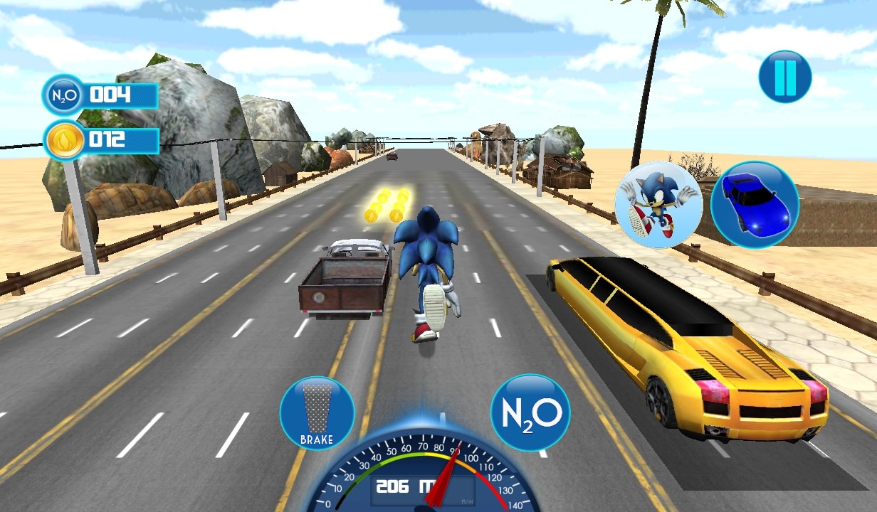 Фанатская игра, сделанная на подобии оригинальной игры Traffic Racer. Автором самой переделанной игры является Soul Colorx. Управляйте свехзвуковым ежом Соником, обгоняйте машины, которые попадаются у вас на пути, собирайте монеты и используйте бусты и различные ускорители.