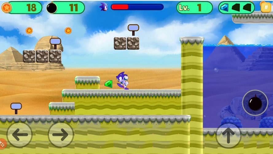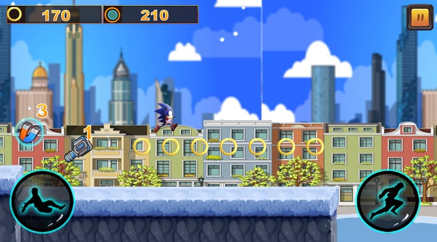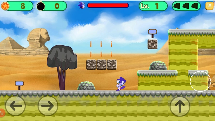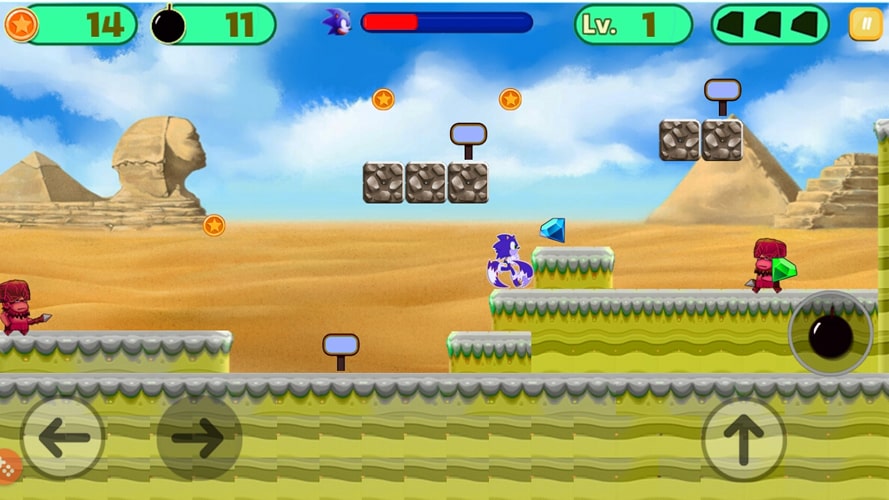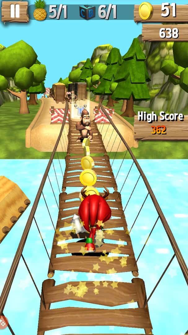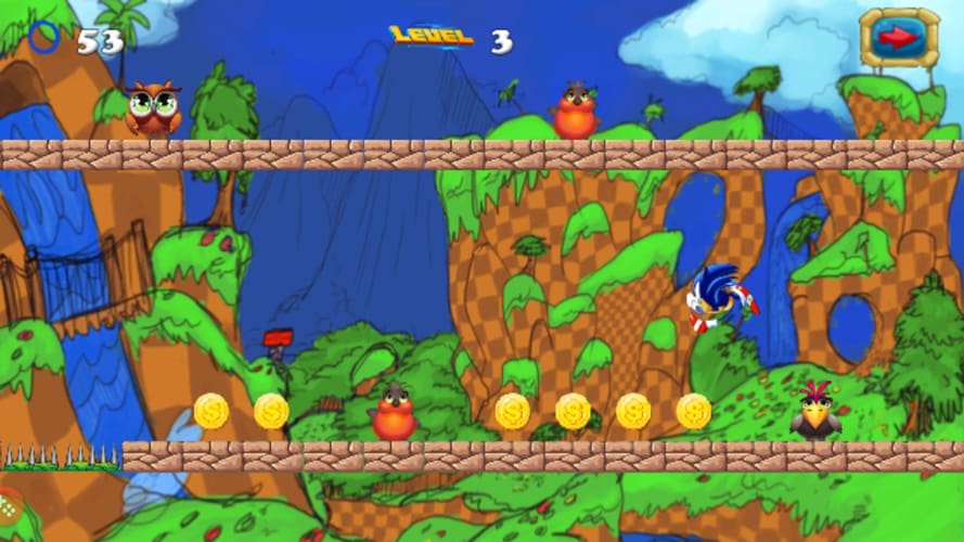 Super Sonic Jungle Adventure Run — один из самых удачных раннеров на андройд, сделанных руками фанатов синего ёжика. Разработчиком игры является hamza apps. В игре присутствует приятная глазу графика, плавный переход анимации и управление. Изначально вам даётся всего один играбельный персонаж — ёж Соник. Есть отдельная комната с персонажами, где вы можете их купить за монеты, которые собираете на протяжении игры. Среди таких персонажей можно увидеть: Наклза, Соника, Эггмана и Эми. На протяжении игры вам будут мешать обезьяны и черепахи.
