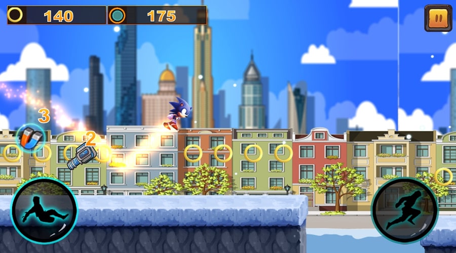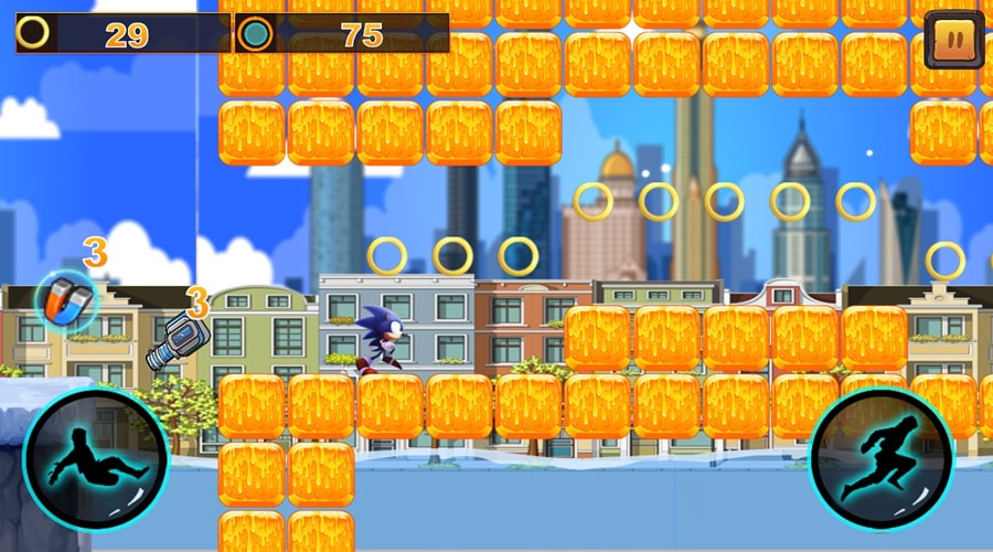 Super Sonic GTA Run — фанатская игра, разработчиком которой является — Mm dev. Ещё один 2D-раннер, в котором вам нужно избегать столкновения с предметами и другими препятствиями. По пути собирайте монеты и перепрыгивайте через шипы. Имеется множество уровней, которые сильно отличаются по сложности и длительности. В каждом уровне появляется что-то новое. В игре имеются заставки из всем известной игры Grand Theft Auto, что также придаёт игре свою атмосферу.