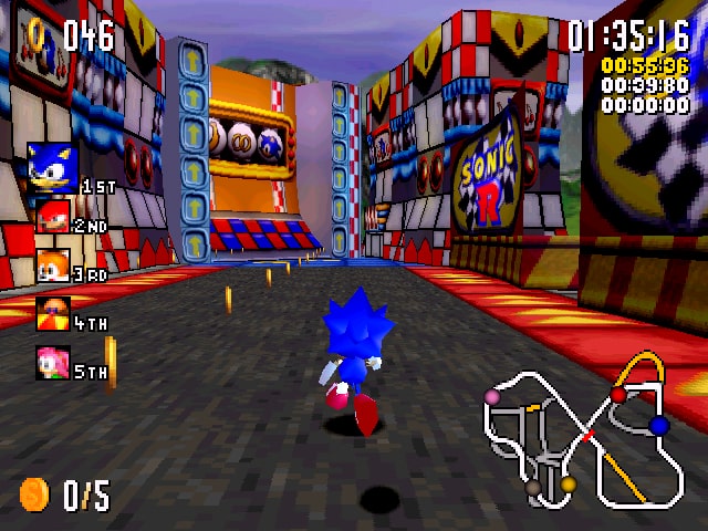 Игра Sonic R позволяет вам соревноваться в беге наперегонки. Игра очень старая, однако, остается интересной по сей день. В игре присутствует огромное количество играбельных персонажей и множество трасс для бега. Каждая зона имеет свои особенности и свою музыку. В игре можете встретить уже известных персонажей: Эми, Наклз, Тейлз, Доктор Эггман.