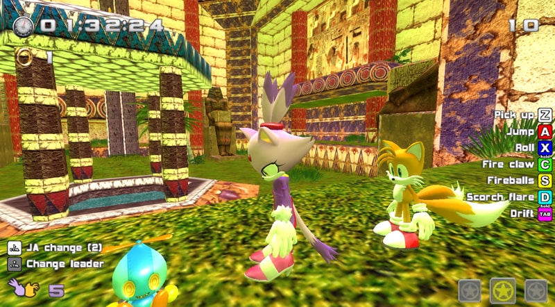 В официальной линейке игр только Sonic Heroes предлагает играть командами по три персонажа, зато есть эта фан-игра от Ozcrash, в которой не только можно играть группами героев, но и составлять их из множества доступных персонажей от Шедоу до Барка! А можно играть и в одиночку. Каждый герой обладает своим набором способностей, многим доступна супер-трансформация. А если вы хотите разблокировать всё сразу, в архив включён Unlocker с сайта игры.